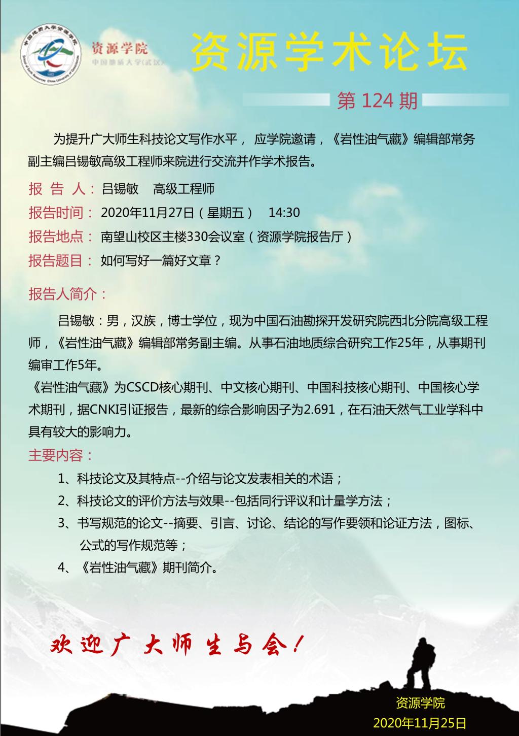 【11月27日】第124期资源学术论坛:吕锡敏学术报告