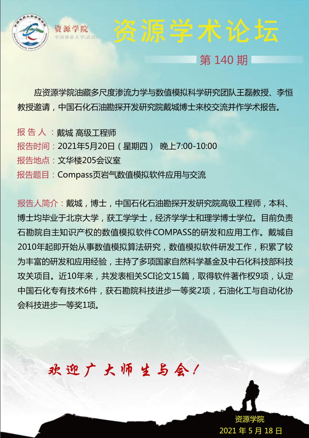 【05月20日】第140期资源学术论坛:戴城学术报告