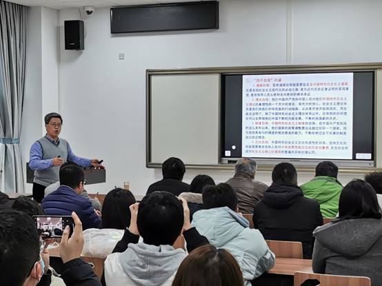 (通讯员 李国庆 王小明)11月28日下午,副校长王华教授在东教楼B0106教室以“透过疫情防控,坚定四个自信”为题讲授专题党课,best365网页版登录党委书记高复阳、盆地矿产系教师党支部和研究生党支部全体在校党员参加学习,活动由盆地矿产系系支部书记王小明主持。