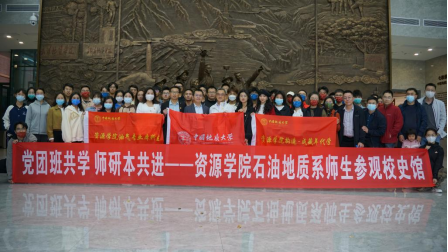 攀登铸荣光,奋进创未来。11月12日,best365网页版登录石油地质系教师党支部与构造-成藏年代学研究生党支部、油气专业本科生党支部以及021224班团支部联合开展“学校史、铭初心”活动,共同到校史馆参观学习。副院长沈传波,党委副书记谭文伦,石油地质系教师党支部书记胡守志,辅导员刘明辉、霍少孟参加学习活动。