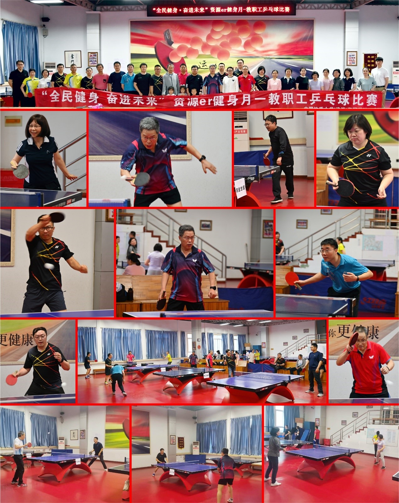 本次比赛共有五个男子组和一个女子组近七十名教职工积极参与,进行小组单打排名,谢丛姣老师担任比赛裁判。赛场上,各位运动员本着“友谊第一,比赛第二”的精神,奋力拼搏,认真打好每一拍。运动员直拍、横排、推球、擦球、钩球、削球、扣球,动作娴熟,乒乓球在空中交锋,球弧优美,引来阵阵欢呼声。经历了一场场精彩绝伦的角逐后,历时2天的乒乓球比赛于5月14日迎来了完美收官。最终,韩金生、付新民、李纯泉、吕帅锋、王华、李嘉光、周江羽、吴超、任双坡、关振良等十位选手(排名不分先后)获得男子前十名,杨梅珍、张冬梅两位选手获得女子前两名。
