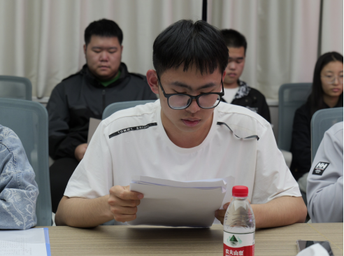 2023年下学期学生会执行主席马玮以《激发奋斗精神 打造资源特色学生会工作品牌》为题做了履职报告。