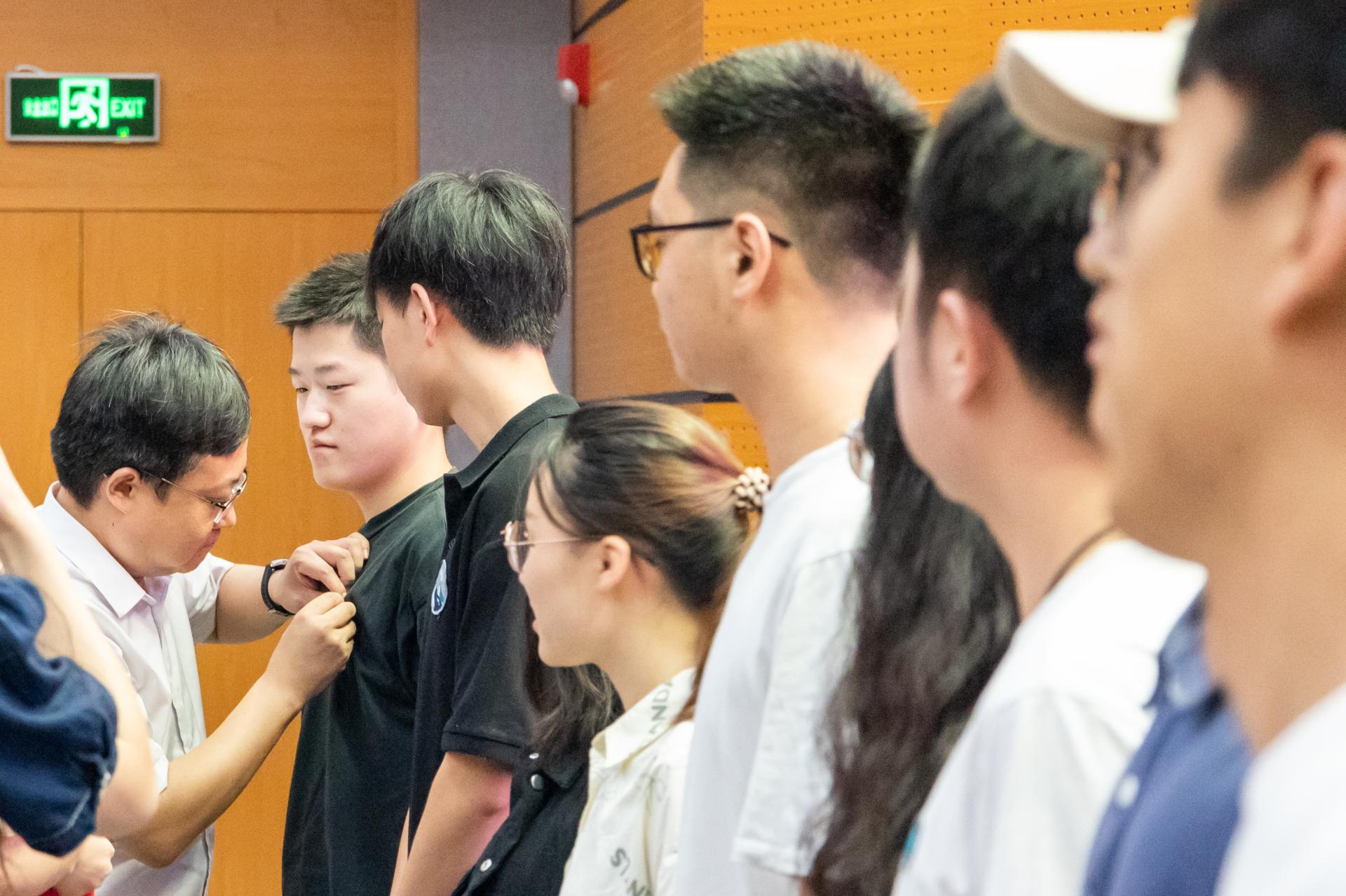 导师代表、石油地质系梅廉夫教授发言。他讲述了现代大地构造学说的发展历程,即从大陆漂移学说理论的提出到被攻击、发现海底扩张新证据、确立板块构造学说地位的艰难过程;亲切勉励同学们在科学研究的道路上,既要仰望星空,更要知行合一,专注、自律、苦练,努力为科学创新贡献自己的力量。
