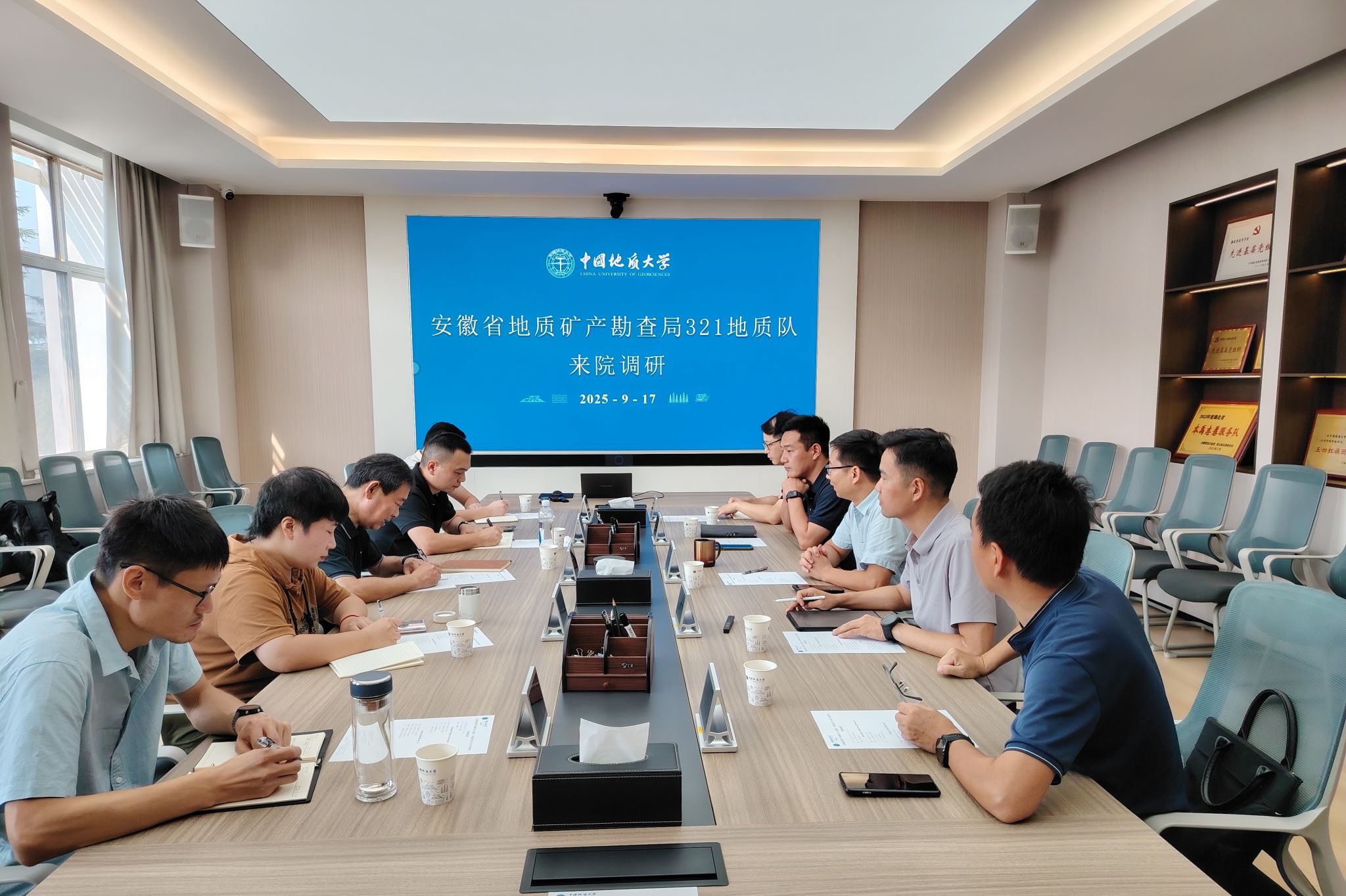 9月17日,安徽省地质矿产勘查局321地质队队长刘章平、副队长刘沙沙一行5人来院调研。best365网页版登录党委副书记谭文伦、副院长李占轲,双方相关部门负责人、教师代表参加会议。资源科学与工程系赵新福教授主持会议。