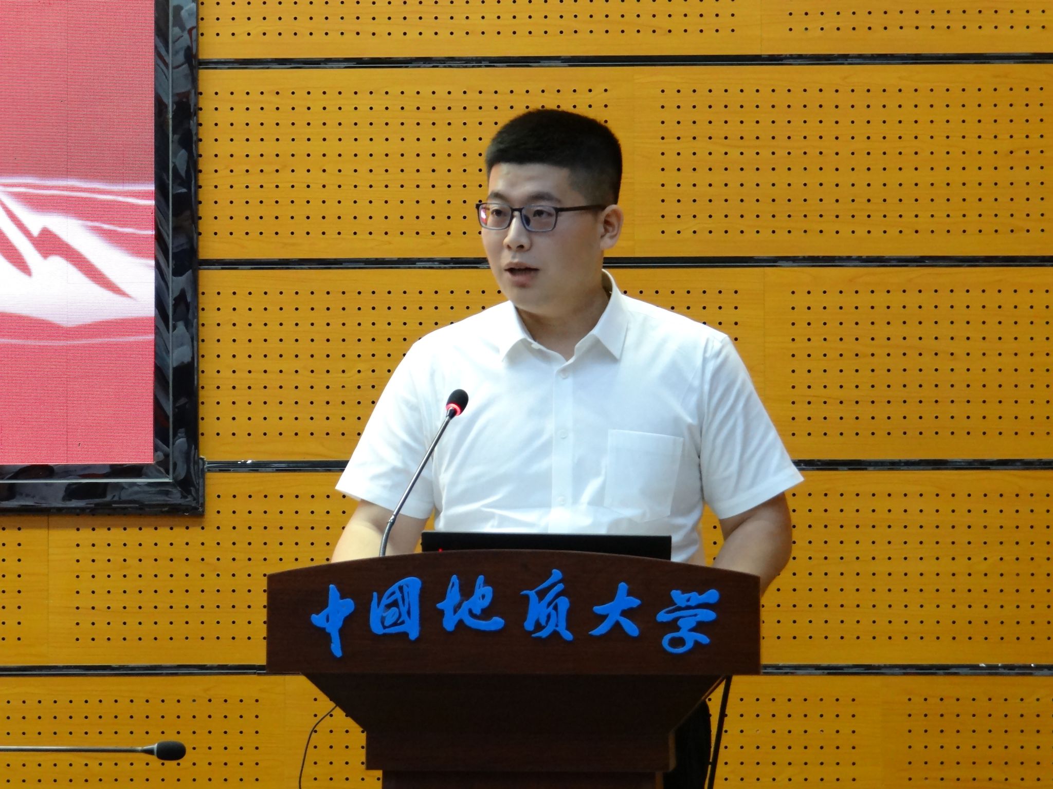 学生代表、学院2023级博士研究生刘桐发言。他结合自身科研实践经历,分享了从本科阶段到现在博士研究生前后四次参与培育工程的成长感悟。他谈到,从最初作为志愿者观摩知识竞赛的激动,到亲身参与岩矿鉴定、科普作品创作等多项赛事,让他深刻体会到“培育工程”与专业领域的紧密对接。他呼吁同学们在实践中,涵养创新思维,夯实专业基础,勇担资源报国使命。