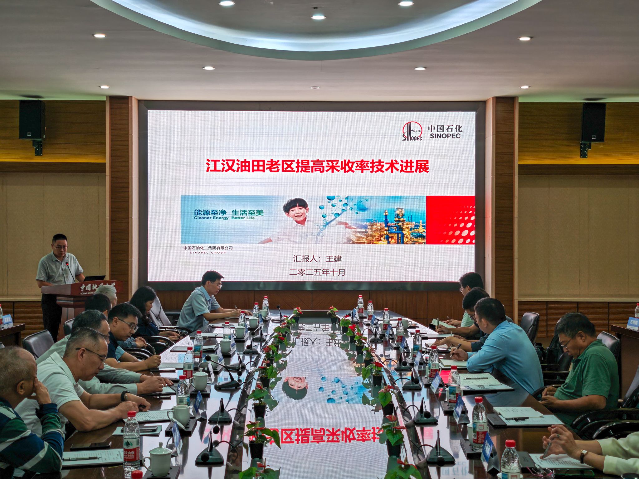 校友代表王建作行业发展报告。他以江汉油田老区油气开发为例,从江汉油田开发现状、江汉油田老区提高采收率进展和新领域开发方向三个方面,全面地介绍了江汉油田老区提高采收率技术进展与开发实践。他指出,非常规油藏开发逐步成为各大油田攻关的主要阵地,潜江凹陷潜江组潜四下段碳酸盐岩、盐间页岩油是未来江汉油田产能建设的主攻方向。
