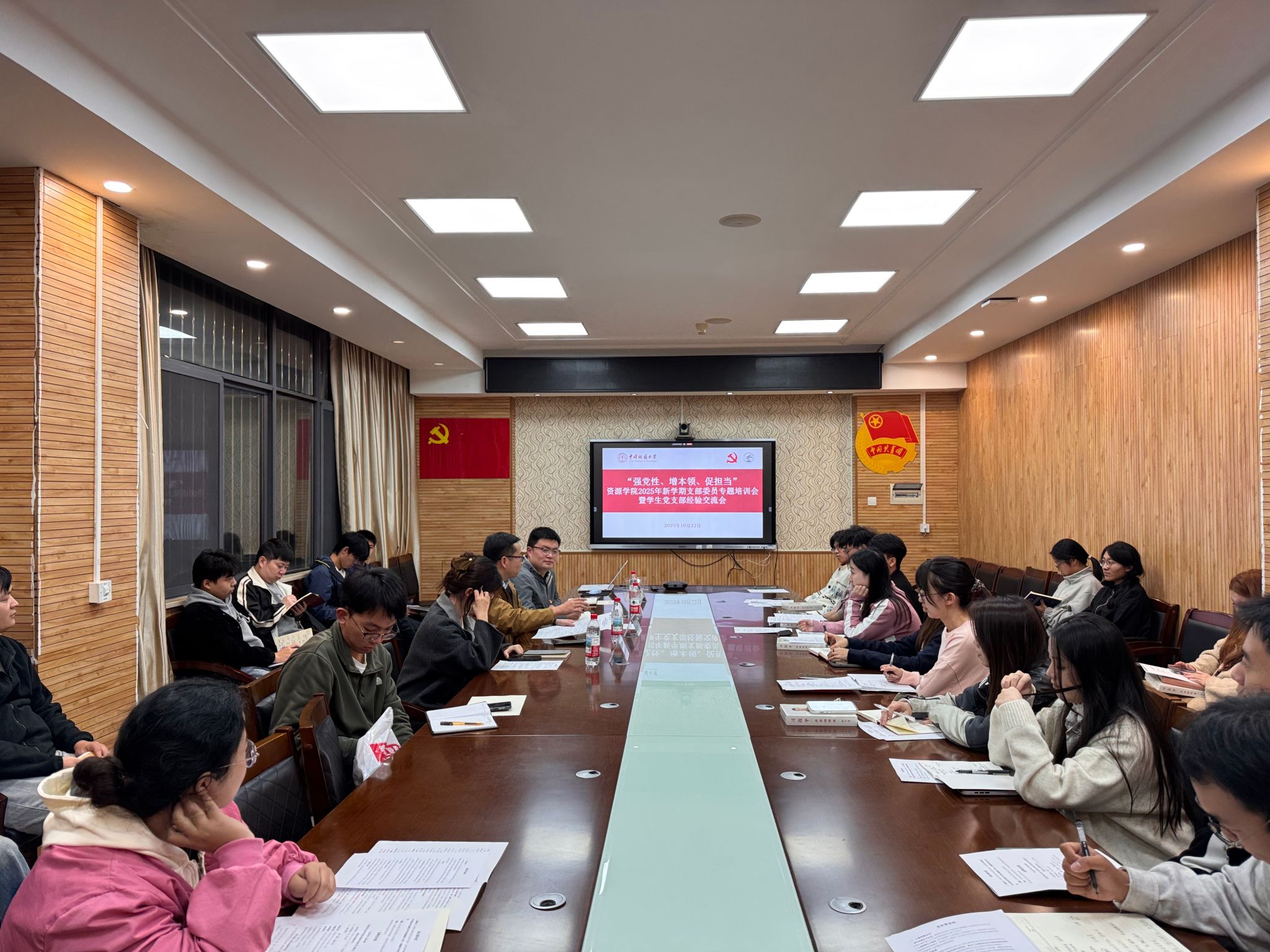 会上,党委副书记谭文伦为上一学年度学生党支部书记代表颁发聘书并作总结讲话。 他首先代表学院党委向新一届学生党支部委员的履职表示祝贺。他指出,学生党支部书记、支委是学生队伍中的骨干力量,是连接党组织和广大学生党员、团员和青年的桥梁纽带,所处的岗位政治性强,责任重大,使命光荣。他强调,一要旗帜鲜明讲政治,严守纪律规矩,筑牢思想根基,不断提升政治理论素养;二要精耕细作抓业务,善用制度、创新方法,将组织生活与专业学习、科研实践等融合,增强支部凝聚力战斗力;三要严于律己作表率,围绕中心工作,推动党建与事业发展相结合,在实践中巩固培训成果,展现新作为、贡献新力量。
