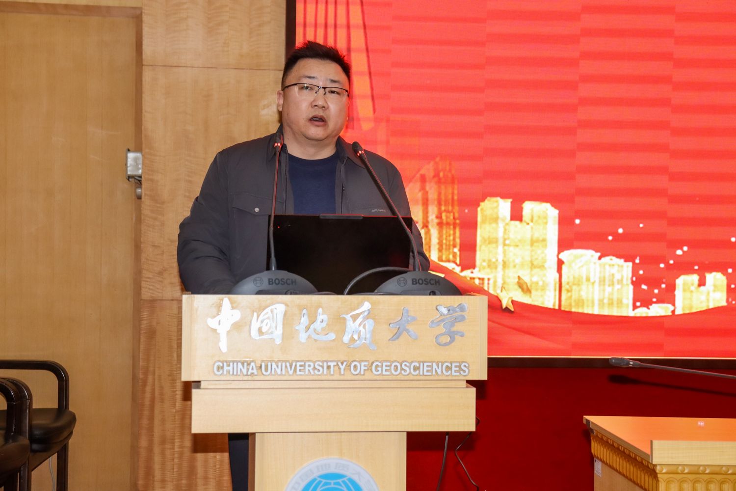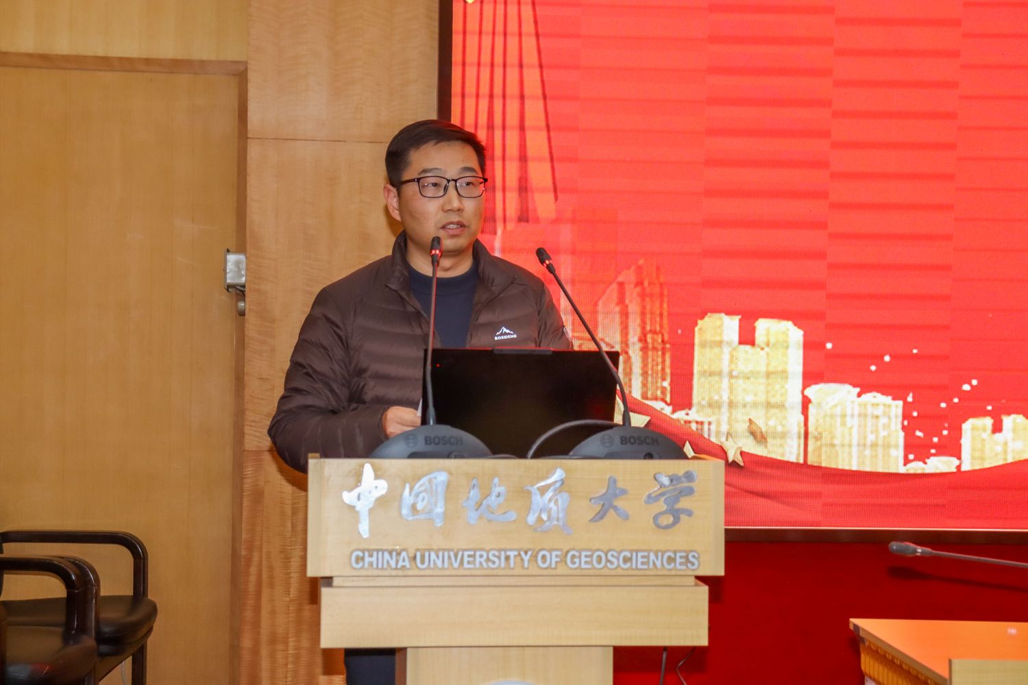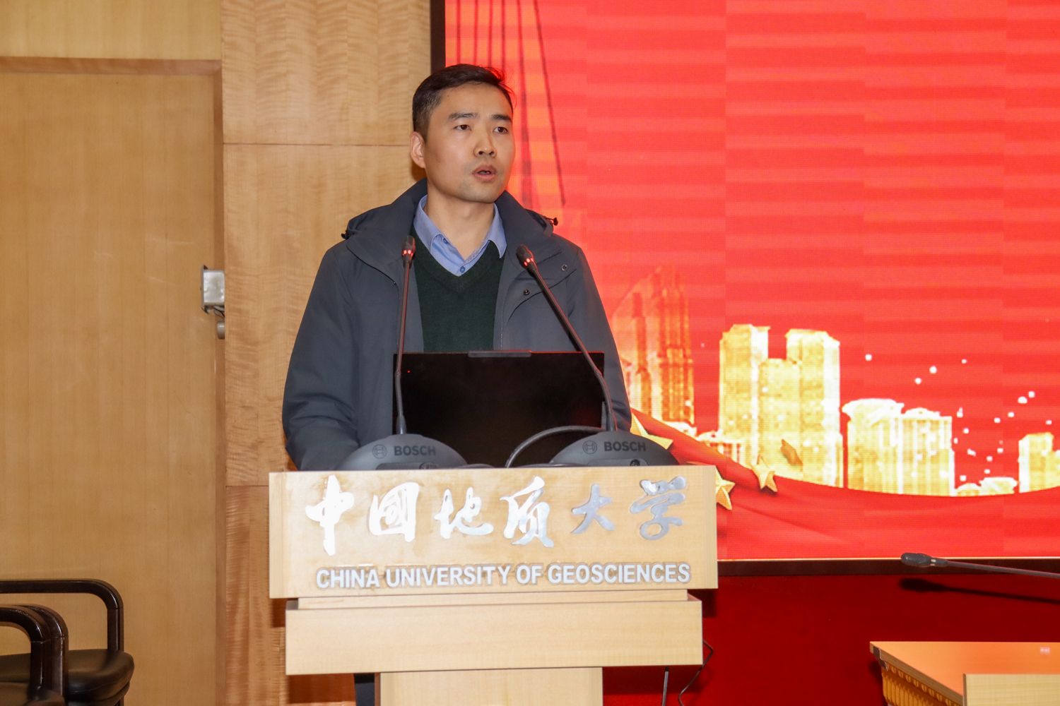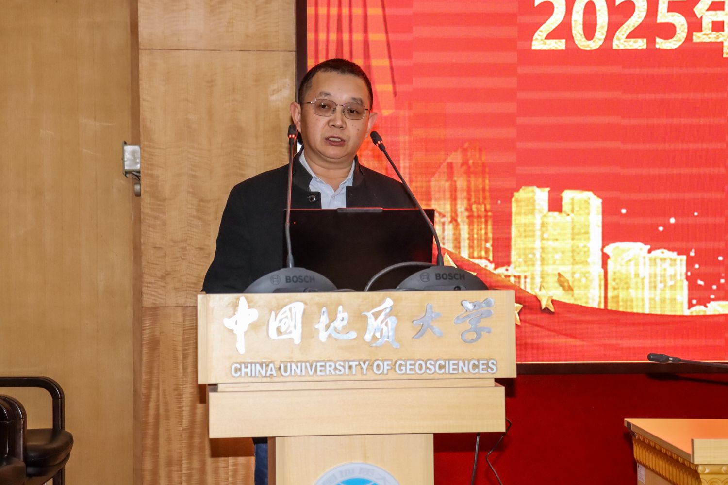刘杰总结讲话。他充分肯定了学院2025年度的工作成绩,他表示,过去一年,学院党政班子坚强有力,师生团结奋进,前瞻性提出“三步走”发展战略,科研到账经费再攀新高,作为核心支撑单位助力学校获批国家卓越工程师学院,事业发展取得了一系列新的重要进展,彰显了学院深厚的科教实力和责任担当。他指出,站在“十四五”收官、“十五五”开局起步的重要节点,学院要全力抢占地学领域拔尖创新人才培养高地,建强学科专业,强化强链、延链、补链以及人工智能背景下的学科专业转型升级意识,持续深化科教融汇、产教融合,贯通“教育链-人才链-创新链-产业链”,深化人工智能赋能教育教学,着力培养一大批能适应未来科技和产业发展的国家急需人才;要聚力打造国家战略科技力量,建设一流师资队伍,推动在领军人才、战略科学家引育上实现突破,持续优化创新生态,强化有组织科研,明确重点领域和重点靶区,有组织、成建制谋划大项目、解决大问题、产出大成果,靠前深入参与新一轮找矿突破战略行动等国家重大工程项目,在勘探大宗矿产和战略性新兴矿产等方面做出新的贡献;要继续深化对外开放办学战略,推动“地质e站”从功能站点升级为战略支点,拓展高质量国际交流合作,吸引国外优秀师资、教材、课程等资源融入人才培养过程,做强非学历教育与社会服务,提升服务行业的能力;要坚持和加强党的全面领导,以高质量党建引领学院事业高质量发展。他强调,学院要凝聚合力、锐意进取,奋力书写“教育强国,地大何为,资源有为”的时代新篇。
