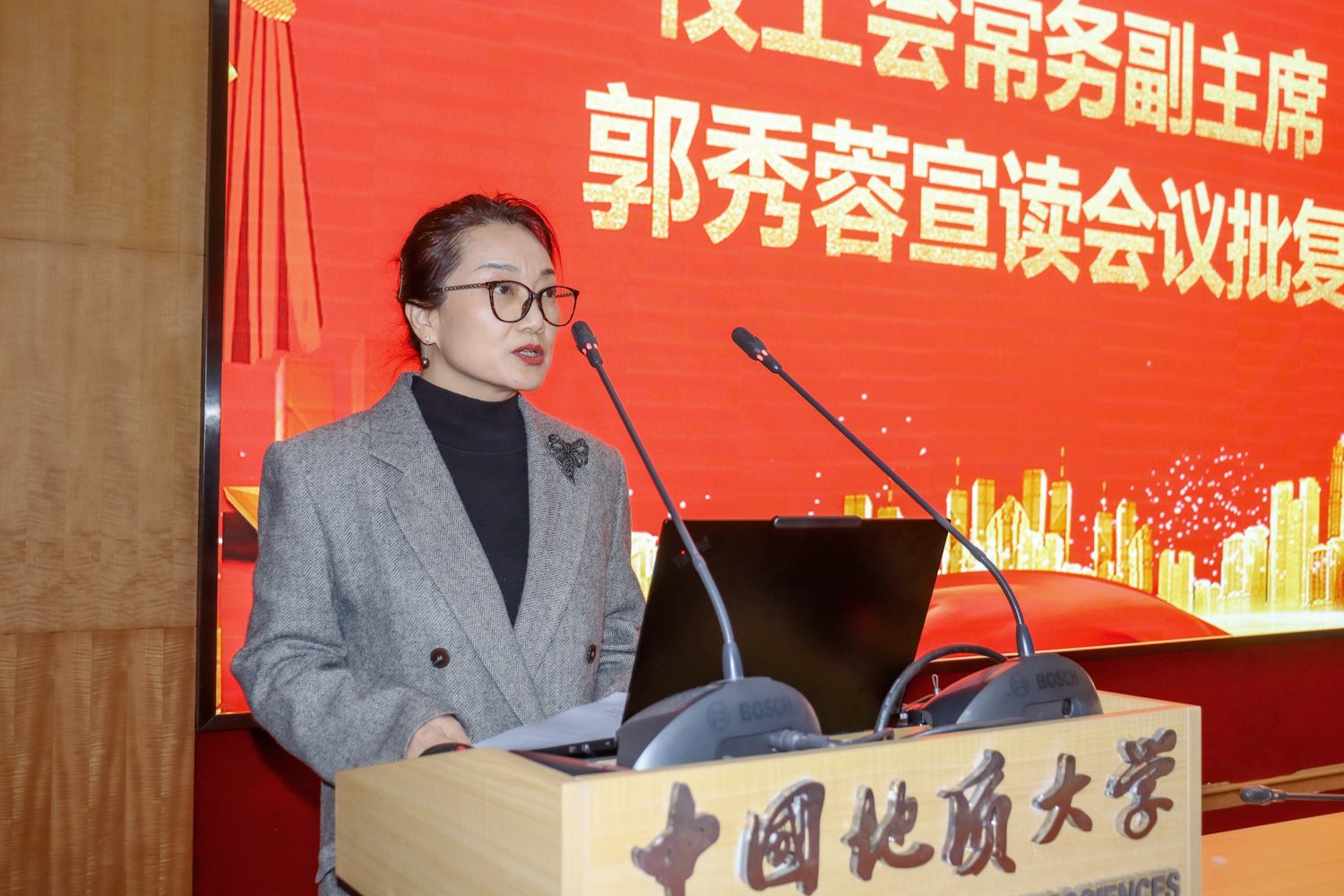 郭秀蓉宣读《best365网页版登录第四届教职工代表大会第四次会议暨第四届工会会员代表大会第四次会议的批复》。