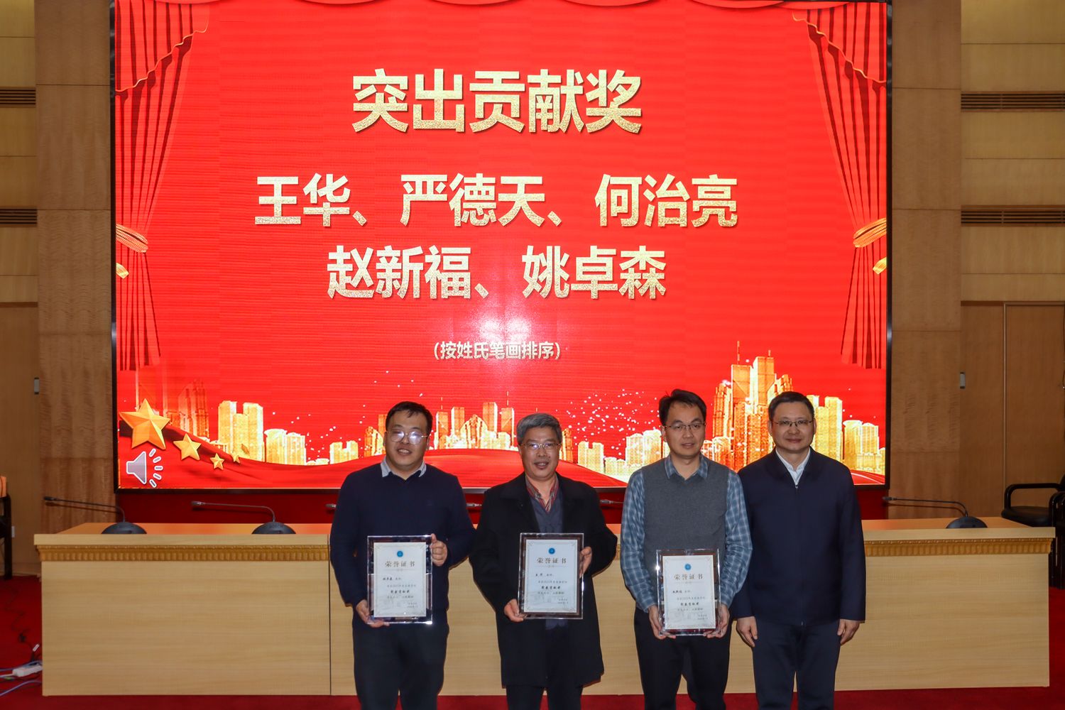 刘杰为学院“突出贡献奖”获得者姚卓森、王华、赵新福颁奖。