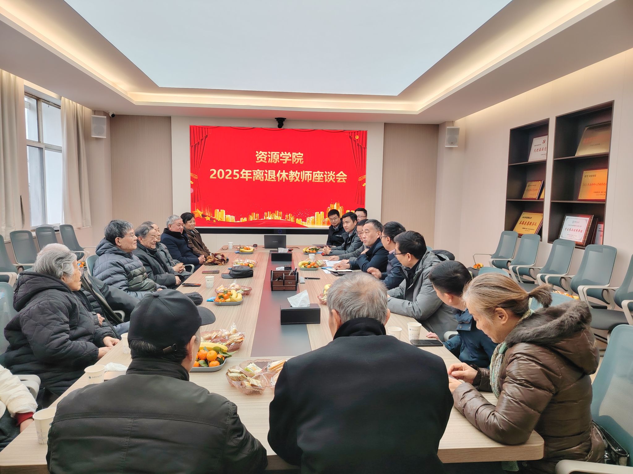院长朱红涛围绕学院年度重点工作与未来规划作了专题汇报。他系统介绍了学院在党建引领、学科建设、师资引育、教育教学、科学研究、社会服务、国际合作及平台建设等方面取得的新进展与新突破,并阐述了学院下一阶段的发展思路与战略布局。朱红涛指出,过去一年,学院始终坚持立德树人根本任务,紧密对接国家战略与行业需求,持续深化综合改革,强化学科特色,推进有组织科研,拓展办学格局,整体事业保持稳步向上态势,在建设资源能源领域世界一流研究型学院的进程中迈出了坚实步伐。他强调,学院今日的成绩,凝结着一代代资源人的智慧与汗水,承载着老同志们奠定的深厚基础。学院将接续奋斗,不负前辈期望,同时也衷心希望离退休教师们能一如既往地关心、支持学院工作,多提宝贵意见,助力学院“十五五”规划实施与高质量发展。