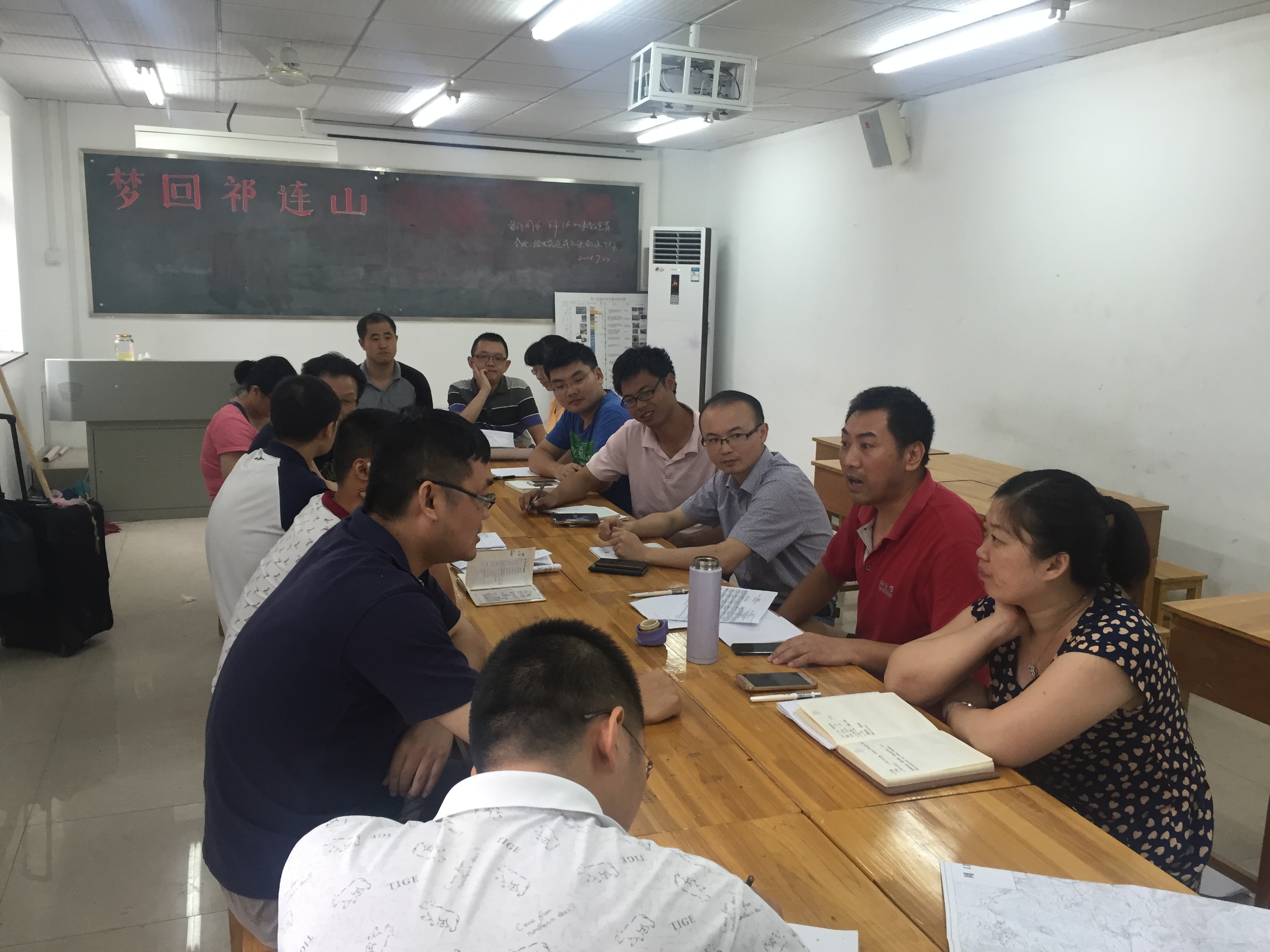 会议由2016资源实习队长焦养泉教授主持。会议主要对即将开始的近两月的教学备课与实习主要工作进行了安排。首先,为了保障教学质量和团队生活工作,成立了相关组织机构,包括教学规划组、后勤保障组、信息宣传组、对外联络组和学生工作组等机构,分别推举相关老师负责,并明确了各位老师的带班班级。然后,对教学实习过程中的人身安全、教学路线规划、教学过程质量评估、数字填图以及教学法讨论等问题展开了探讨,形成了一致意见。再次,对教学实习过程中的室内授课内容及人员安排进行了落实。
