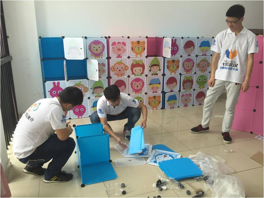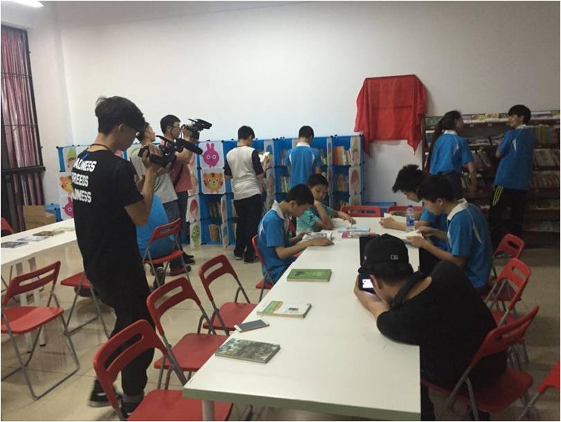 刚到达目的地,迎面而来的一个浩大工程就是要把几千本书籍搬运到五楼的阅览室。面对如此浩大的工程,在场的老师和志愿者们互相加油打气,一捆捆书籍、一步步台阶,在历经近两个小时后,如数搬到五楼阅览室。为了让孩子们尽早享受到阅读的快乐,志愿者们没有停歇,按照活动分工开始书屋的搭建。大家各司其职,分工协作,有的在负责安装书架,有的在给书籍整理分类,有的在手绘阅览室墙壁,终于在晚上8点钟,完成了2个阅览室的美化,8个书架的安装,3600余本书籍的归类。当聋哑学校的孩子们走进阅览室后,尽管他们不能用语言表达,但志愿者们能从孩子们充满笑容的表情中感受到他们内心的的喜悦,他们纷纷走到书架前开始选择自己钟意的书籍。最后,在志愿者与聋哑学校的孩子们共同见证下,聋哑学校杨校长与王向东老师一起为“武汉第一聋哑学校0010号爱心南望书屋”和“best365网页版登录红星青年志愿者协会与武汉市第一聋哑学校共建志愿服务基地”揭牌,旨在今后进一步保持互动,志愿者们将定期、持续地帮扶聋哑学校的孩子们,让他们感受到来自社会的关爱,树立自强,自信,自立的观念,创造美好的人生。