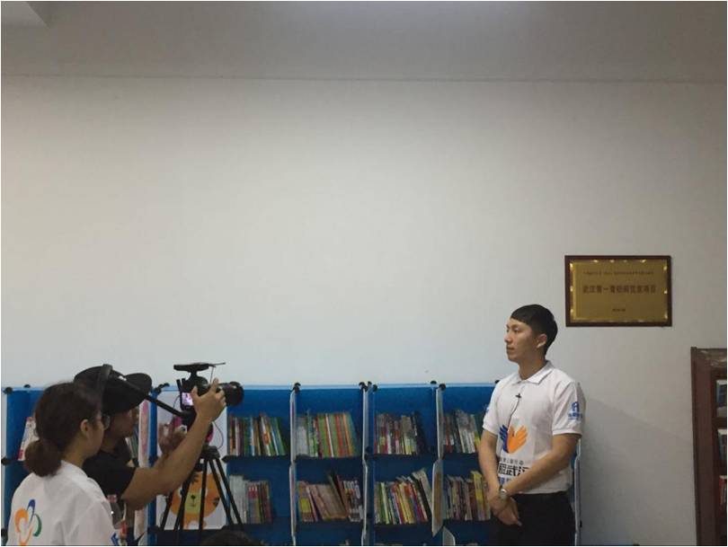 5月5日13点,在所有准备工作就绪后,爱心书屋搭建之旅正式启程。武汉电视台“大爱武汉”栏目拍摄组全程跟拍,来自best365网页版登录“红星”青年志愿者协会、南望书屋、珠宝学院北极光协会的10余名志愿者们齐聚在大学生活动支持中心楼下,校团委黄蕾老师、best365网页版登录王向东老师一起为志愿者们做活动动员,并与大家一同前往武汉市第一聋哑学校。