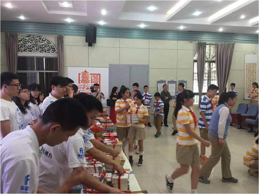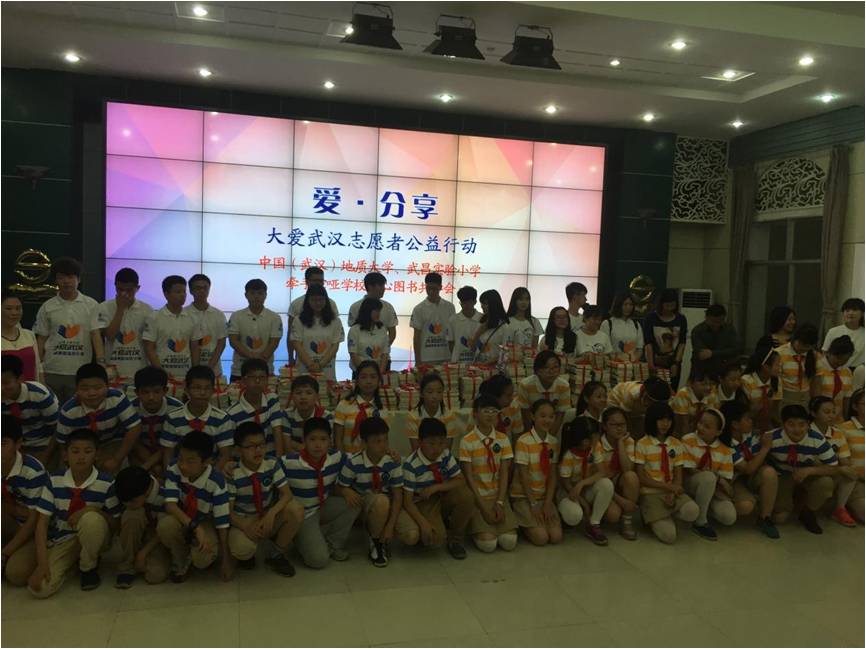 活动在前期开展过程中,得到了校志协、社团联、地大社区居委会、附属小学等单位的大力支持,共筹得用于购买书架的善款1901元,爱心书籍560本。但距离志愿者为孩子们搭建两间爱心书屋的目标尚存在距离,令人欣喜的是,经武汉市电视台面向社会发出爱心动员后,湖北省武昌市实验小学六年级毕业班的全体同学们积极加入到献爱心的行列中,在短短一天时间,筹得书籍近3000本,并且种类更丰富,层次更适龄。在实验小学举行主题为“爱·分享”的书籍交接仪式上,孩子们手捧着一摞摞沉甸甸系着红丝带的书籍入场,并且每人都附上了一张写满祝福的纸条,满怀爱心之举着实令人感动。