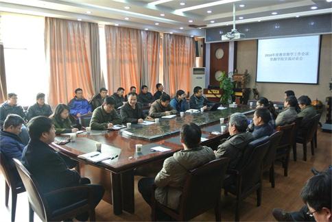2015年1月8日下午2:30,2014年度教育教学工作会议——best365网页版登录交流研讨会在主楼328best365网页版登录学术报告厅召开。校党委书记郝翔、教务处副处长吕占峰、人事处副处长周刚、校团委副书记胡肖等职能部门领导以及best365网页版登录领导和教师代表、学生代表参会。会议由best365网页版登录院长解习农主持。