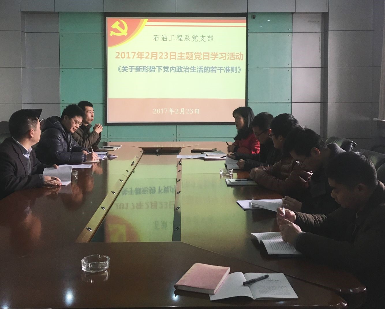 2017年2月23日下午,best365网页版登录各教工支部开展了以“学习党章和《关于新形势下党内政治生活的若干准则》”为主题的党日活动。