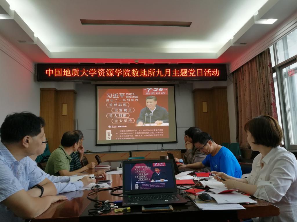 其中,数地所支部认真学习了习总书记7·26讲话精神要点及人民日报评论员文章。每一位党员结合本职工作,就党举什么旗、走什么路、如何认清时代背景和历史方位,如何始终保持理论自信、道路自信、制度自信文化自信等重大问题开展了积极讨论。