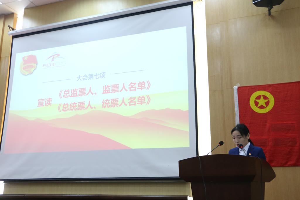 大会主席团成员、院学生会副主席毛尹于宣读《总监票人、监票人名单》和《总统票人、统票人名单》。