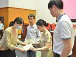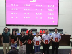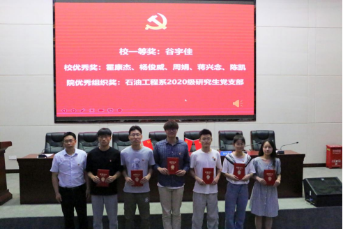 王甫部长为学院在学校“习近平新时代中国特色社会主义思想”宣讲大赛获奖的6支学生党员队伍颁发荣誉证书。