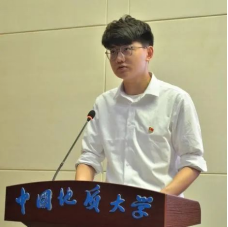 新发展党员代表、博士生范高华同学发言。他回顾了在自己地大十余载的求学与成长经历,报告了自己对学校教育和组织培养的感激之情,分享了新加入中国共产党这个光荣组织的激动心情,表达了自己在攀登科学高峰中追求卓越,在真刀真枪中实干一番事业的信心和决心!