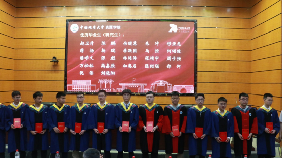 2013届校友、2022年“全国向上向善好青年”入选者欧阳永棚通过线上方式为同学们送上祝福。他深情回忆地大7年求学路,回顾了自己9年间参与朱溪世界最大钨矿床等勘查工作经历,感悟只要能坚持不懈、沉得下心、耐得住寂寞,就能够在平凡的岗位中不断实现自身价值;他谈到地质事业的发展迫切需要有理想、有本领、有担当的青年们加入,希望同学们将个人的理想追求融入党和国家宏伟蓝图中,继续发扬地矿“三光荣、四特别”精神,为保障我国矿产资源安全添砖加瓦,在奋斗中绽放青春之花。