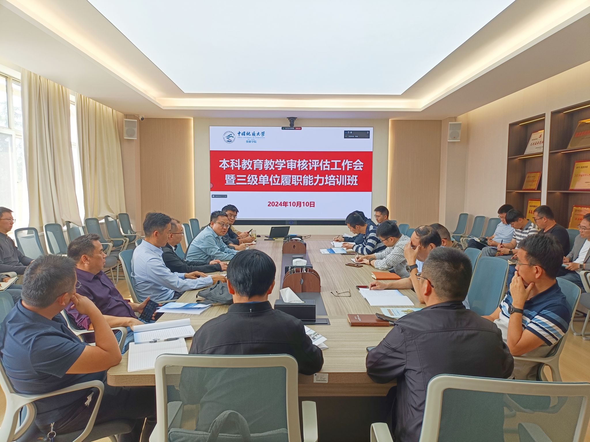 10月10日上午,best365网页版登录在地勘楼330会议室以线下+线上相结合的形式召开本科教育教学审核评估工作会暨三级单位党政班子履职能力培训会。学院领导班子、三级单位党政班子相关成员参加会议。
