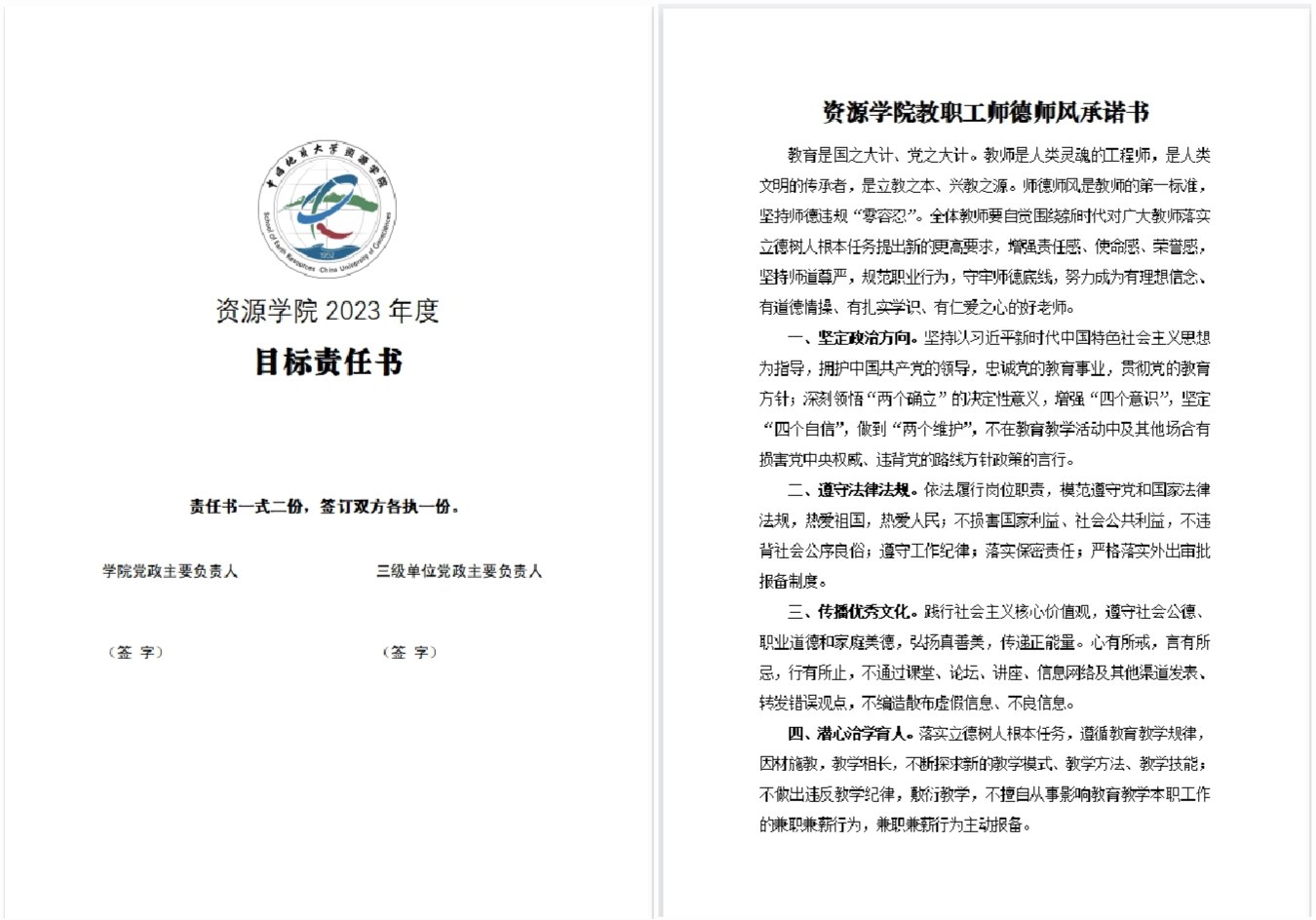 会上,学院与全体教职工逐一签署《best365网页版登录教职工师德师风承诺书》;书记、院长共同与三级单位党政负责人签署2023年党风廉政建设、保密工作、消防安全、平安建设、招生工作、就业工作等工作目标责任书。