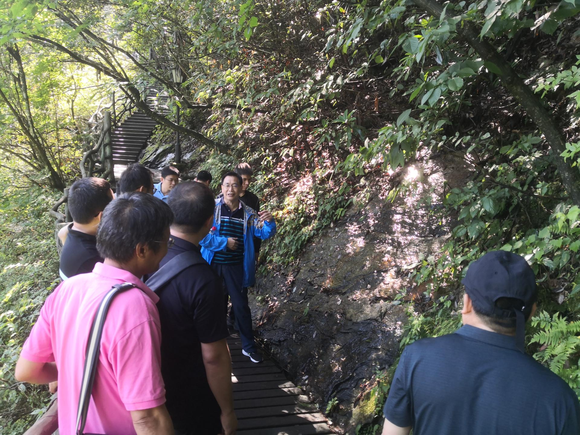 会后,以拓展武汉周边地质实习内核为主题,杨香华教授带队围绕大别山核心造山带—大别山国家地质公园,实际点位观察大别山变质核杂岩岩性组成与结构特征,现场讨论其对造山带隆升的指示意义,落实教学点位及任务。与会老师们积极挖掘地球系统科学内动力和外动力地质作用的野外实践素材及实训点,重点关注如何激发、引导学生对课堂理论知识的认知,培养学生对时间-空间作用演化的感知,提升学生的地质思维与兴趣,切实体会地质之美。整体行程紧扣地质理论与野外实践相结合准则,拓展野外实习空间及知识内涵,服务专业课程教学工作。