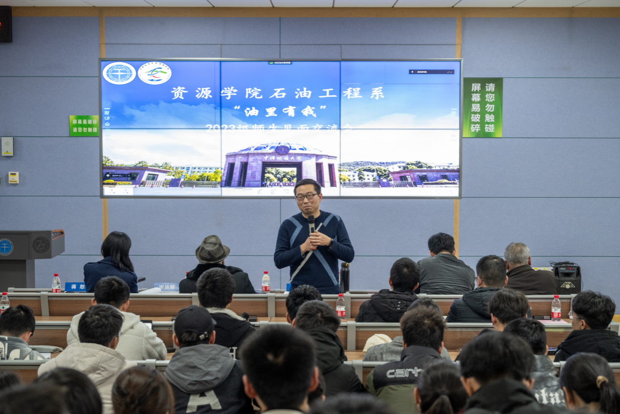 2023年12月27日晚,best365网页版登录石油工程系在东区综合教学楼C栋0106举办了“油里有我”2023级本科生师生见面会。此次活动旨在进一步增强学生对专业的认知、增进师生的交流与了解,为学生未来学习与科研打下基础。学校教学监督员马立祥,学院党委副书记谭文伦,石油工程系支部书记谢丛姣、系主任蒋恕及顾军、龚斌等石油工程系全体教师参加会议。石油工程系副主任钟志主持交流会。