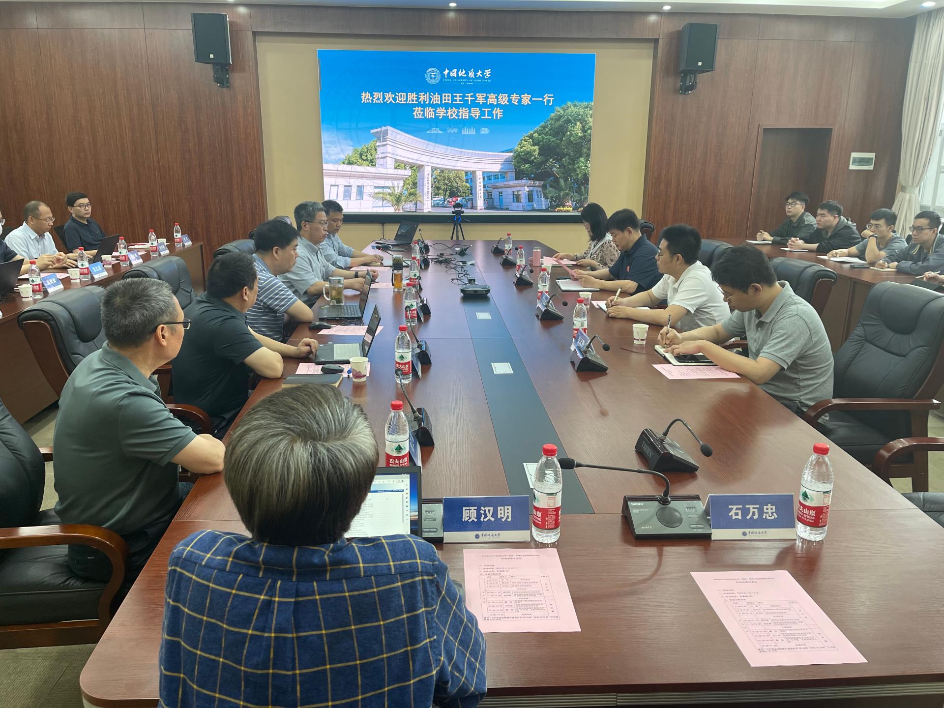 王华对王千军一行来校调研表示欢迎,并从师资队伍、学科方向、科学研究、科技创新平台、新校区建设等方面介绍学校整体情况。他希望,双方建立常态化合作机制,畅通合作共商沟通渠道,搭建合作平台,聚焦胜利油田勘探开发需求,强化重大项目交流合作,持续推动科教融合、产教融合,积极与油田开展科研平台合作共建,主动承担重点项目科学研究,解决油田勘探开发实际问题。